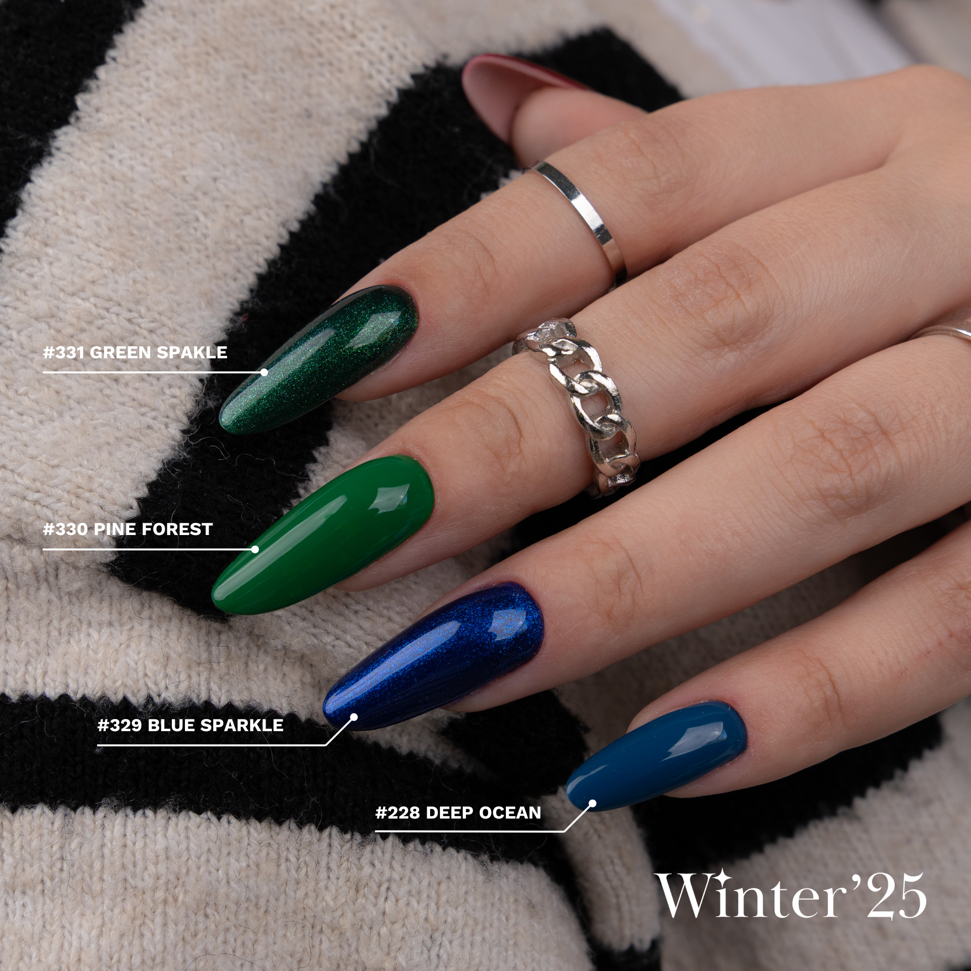 Winter’25 to zestaw odcieni stworzonych z myślą o zimowych stylizacjach – od chłodnych błękitów, przez głębokie zielenie i granaty, aż po klasyczne czerwienie i eleganckie srebra oraz złoto
